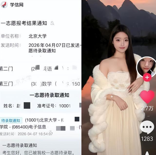 这种身材的女同学,她的目光还能放在学习上,那也太惊人了。结果北京大学还真的给她发放了一志愿的待录取通知,她考的还是特别难的电子信息专业。